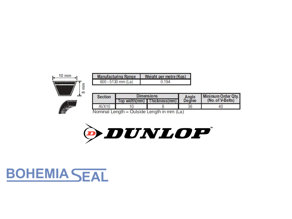 AVX 10 x 800 La, Dunlop, Automobilní klínový řemen, AVX10 -800