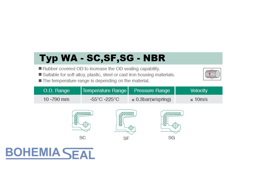 Typ WA – SC, SG, SF ist ein Typ mit gummiertem Gehäuse, ohne Staubschutzklinge.