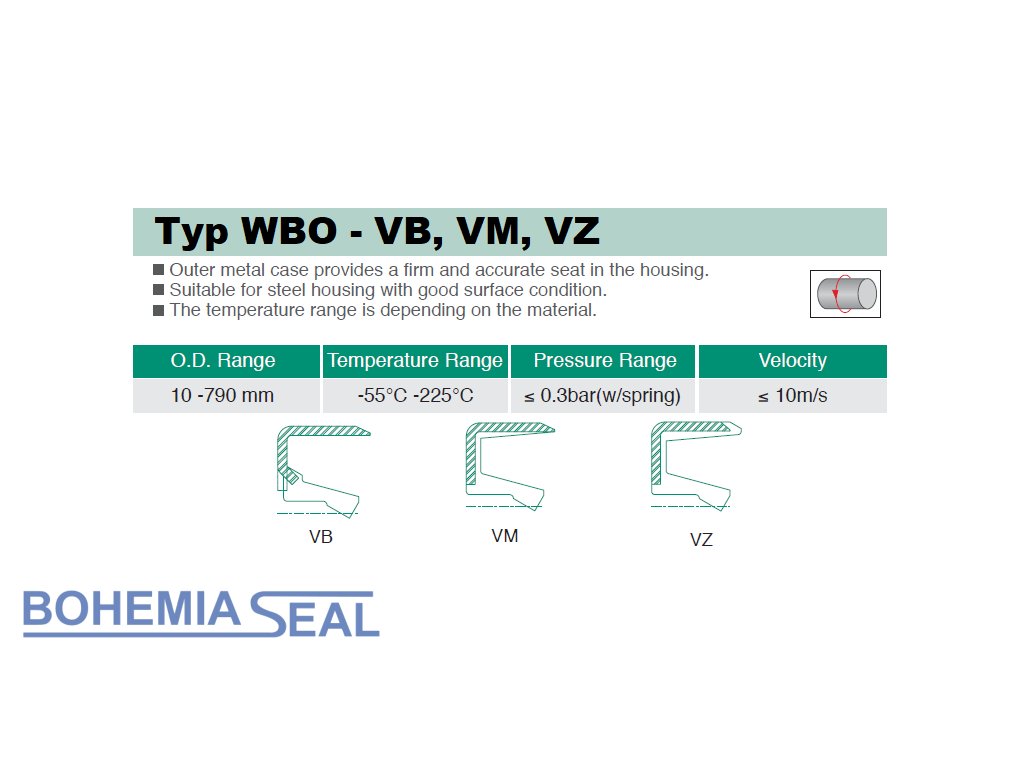 Typ WBO - VB / VM / VZ ist ein Typ ohne Feder, mit plattiertem Außendurchmesser, ohne Staublippe. Das NBR-Material ist bis 100°C geeignet.
