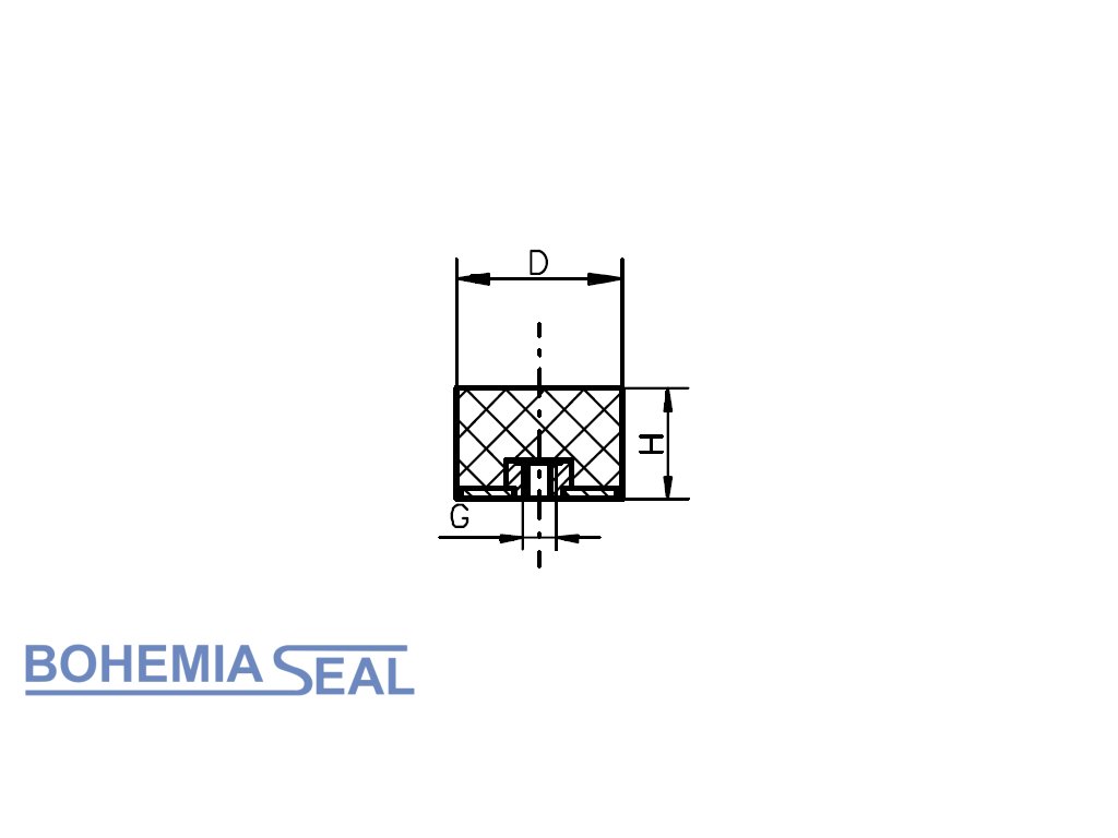 Zylinderförmiger Stiller Block-Typ 5 (Nuss - Gummi) Durchmesser 40mm / Höhe 20mm, M8, BAK