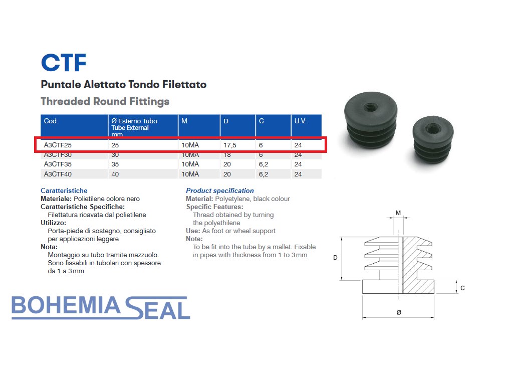 fortective end of the pipe through polyethylene black A3CTF, for diameter 25mm, GeTech A3CTF25