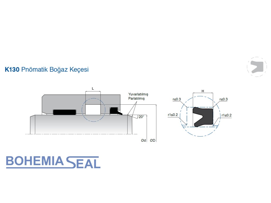 Pneumatic rod seal K130 is a single-acting sealing element of a pneumatic system made of elastomeric material.