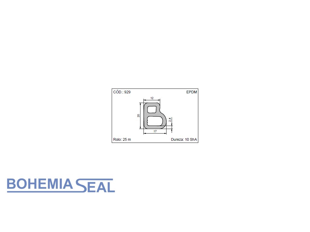 Typ: Pryžový profil pro automobilový průmysl mikroporézní EPDM 17 x 22,5 mm (cena za 1 metr)