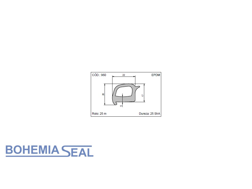 Typ: Pryžový profil pro automobilový průmysl mikroporézní EPDM 22 x 12,5 mm (cena za 1 metr)