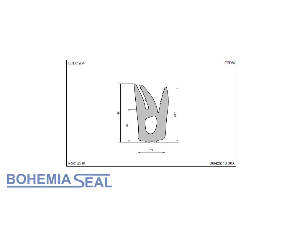 Typ: Pryžový profil pro automobilový průmysl mikroporézní EPDM 22 x 43,5 mm (cena za 1 metr)