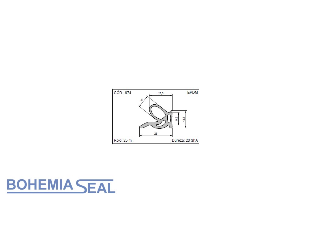 Typ: Pryžový profil pro automobilový průmysl mikroporézní EPDM 25 x 13,5 mm (cena za 1 metr)