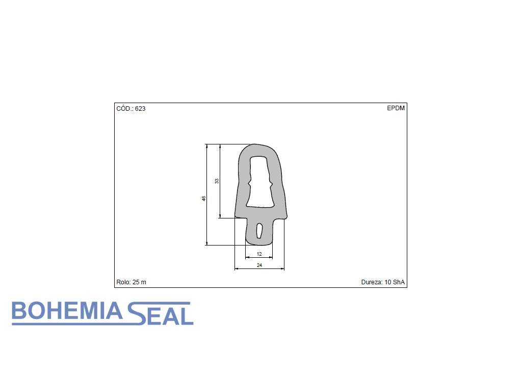Typ: Pryžový profil pro automobilový průmysl mikroporézní EPDM 24 x 46 mm (cena za 1 metr)