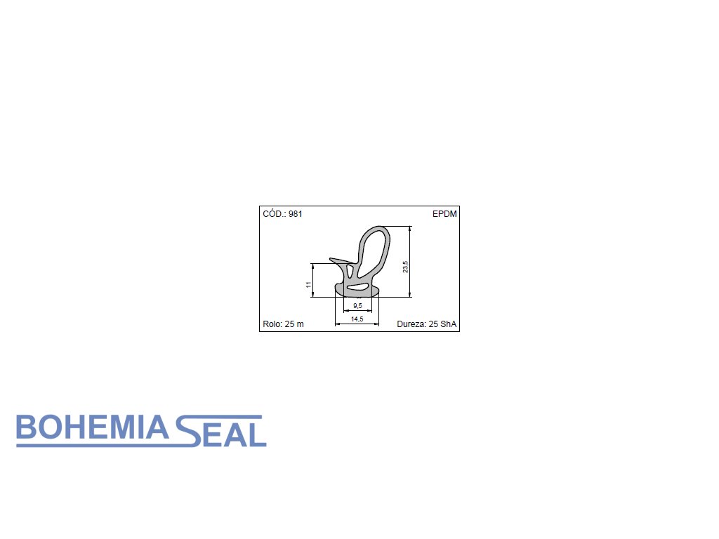 Typ: Pryžový profil pro automobilový průmysl mikroporézní EPDM 14,5 x 23,5 mm (cena za 1 metr)