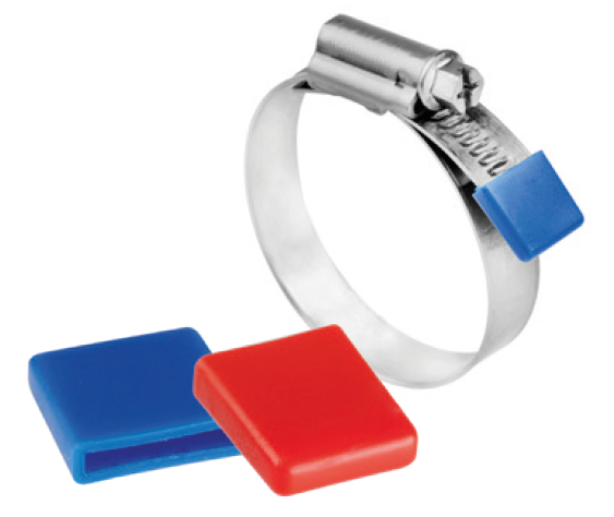 Tyto bezpečnostní krytky pro hadicové spony se šnekovým pohonem jsou praktickým a rychle sestavitelným řešením, které chrání konec pásku před zraněním. Vyrábějí se ve dvou různých barvách, které pomáhají určit kvalitu materiálu spon: (Červená: W1 a W2 - Modrá: W3, W4 a W5).
