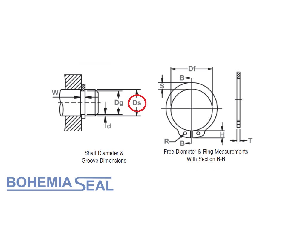 Stainless steel retaining ring for the shaft (dimension Ds), standard DIN 471 (ČSN 029230, A , D1400, DSH).Additional parameters
