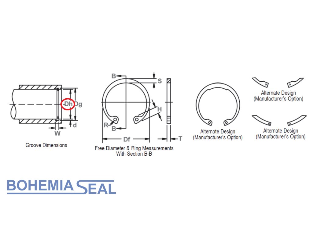 Segerka nerezová do díry (hlavní rozměr Dh), norma DIN 472 (ČSN 029231, J , D1300, DHO).