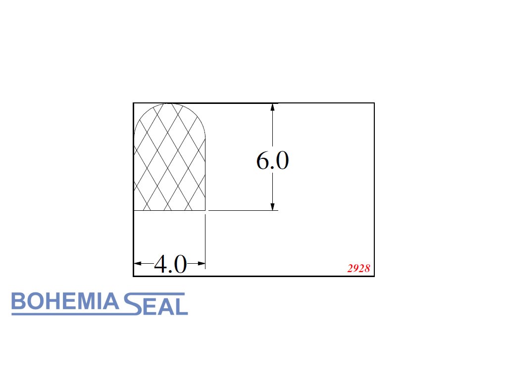 Typ: Profil D-plný , AM-2928, 4mm x 6mm , MVQ60ShA bílý, FDA