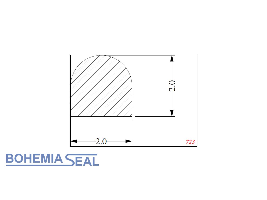 Typ: Profil D-plný , AM-723, 2mm x 2mm , MVQ60ShA bílý, FDA