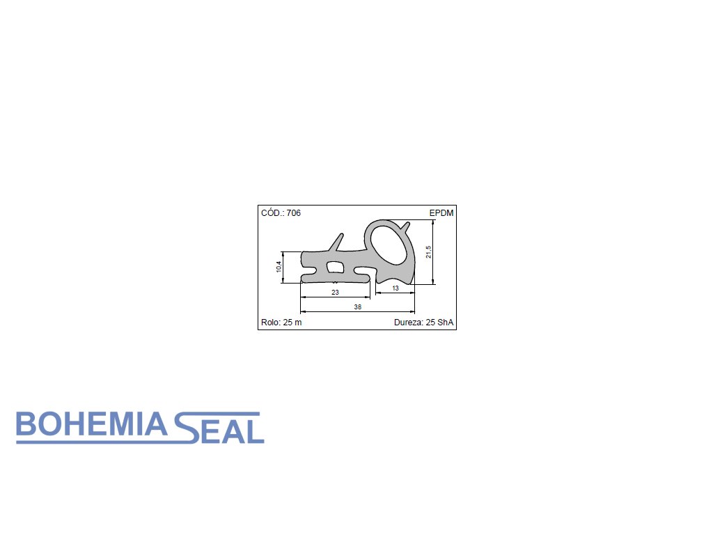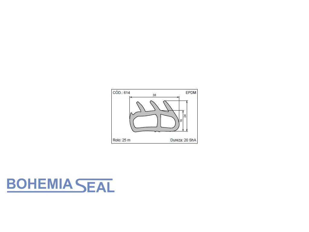 Typ: Pryžový profil pro automobilový průmysl mikroporézní EPDM 38 x 21,5 mm (cena za 1 metr)