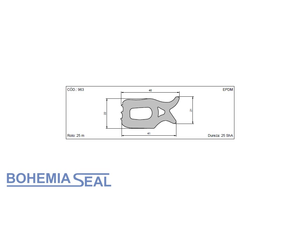 Typ: Pryžový profil pro automobilový průmysl mikroporézní EPDM 46 x 22 mm (cena za 1 metr)