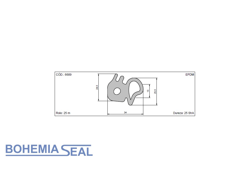 Typ: Pryžový profil pro automobilový průmysl mikroporézní EPDM 34 x 25,5 mm (cena za 1 metr)