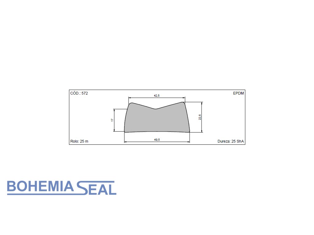 Typ: Pryžový profil pro automobilový průmysl mikroporézní EPDM 49,5 x 22,6 mm (cena za 1 metr)