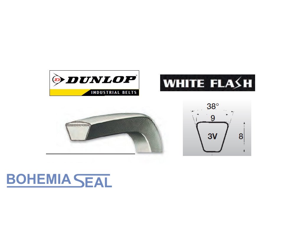 Klinové remene Dunlop White Flash profilu 3V/9N podľa ARPM/MPTA majú rozmer klinu: šírka hornej plochy remeňa 9 mm x výška remeňa 8 mm.
