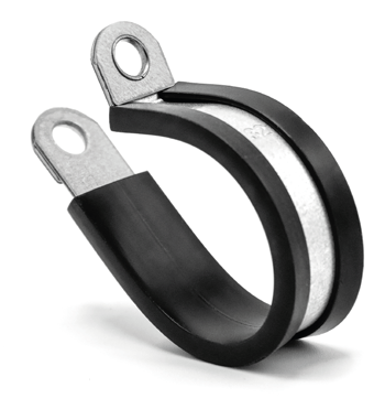 DIN 3016. Pryžové P-klipy jsou vyrobeny z ocelových pásů potažených EPDM pryží. Tato pryžová vložka zajišťuje bezpečnou těsnou montáž, chrání aplikační oblast a zabraňuje možnému poškození způsobenému vibracemi. Otvory pro šrouby jsou vyztuženy kovovými destičkami, které zaručují pevné uchopení. P-klipy se doporučují pro upevnění trubek, hadic a vedení v mnoha různých aplikacích.