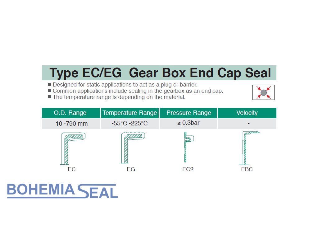 Těsnicí víčka slouží ke statickému utěsnění konce hřídelí. Teplotní rozsah záleží na použité pryži.